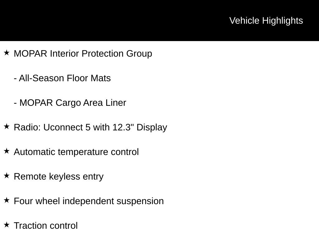 - Wireless phone connectivity: Uconnect w/Bluetooth
