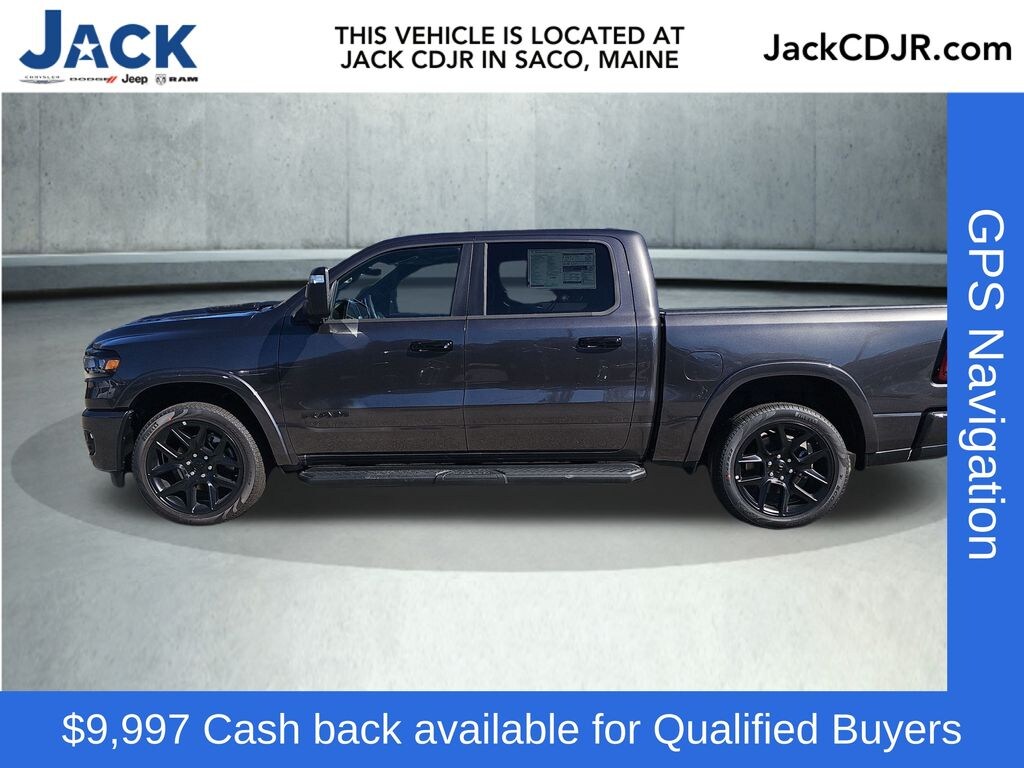 Granite Crystal Metallic Clearcoat 2025 Ram 1500 Laramie 8-Speed Automatic #1 Seat Foam Cushion, 12-Way/1-Way Trailer Connector, 14.4" Touchscreen Display, 3 Rear Seat Head Restraints, 4 Way Front Headrests, 4G LTE Wi-Fi Hot Spot, Accent Color Door Handles, Accent Color Premium Power Mirrors, Accent Color Tailgate Handle, Active Driving Assist System, Advanced Safety Group II, Anti-Spin Differential Rear Axle, Apple CarPlay, Auto Power-Folding Mirrors, Auto-Dimming Exterior Driver Mirror, Auto-Dimming Exterior Passenger Mirror, Automatic temperature control, Black Exterior Mirrors, Black Exterior Truck Badging, Black Headlamp Bezels, Black Interior Accents, Black Painted Exterior Mirrors Caps, Black Tail Lamp Bezels, Body Color Front Bumper, Body Color Rear Bumper w/Step Pads, Bucket Seats, Center Console Parts Module, Chrome Exterior Mirrors, Cluster 12" TFT Color Display, Connected Travel & Traffic Services, Connectivity - US/Canada, Convex Wide-Angle Exterior Mirror Insert, Dome Dual LED Reading Lamp, Driver Seat Memory, Drowsy Driver Detection, Dual Exhaust w/Black Tips, Dual-Pane Panoramic Sunroof, Evasive Steer Assist, Exterior Mirrors Approach Lamps, Exterior Mirrors Courtesy Lamps, Exterior Mirrors w/Heating Element, Exterior Mirrors w/Memory, Exterior Mirrors w/Supplemental Signals, Forward & Reverse Utility Lights, Front fog lights, Front Seat Back Map Pockets, Full Length Upgraded Floor Console, Google Android Auto, GPS Antenna Input, GPS Navigation, Grille Surround 3 Black Texture 2 Black, harman/kardon 19 Speaker Premium Sound, HD Radio, Heated Front Seats, Heated Second Row Seats, Heated Steering Wheel, Integrated Voice Command w/Bluetooth, Intersection Collision Assist System, Laramie Level 2 Equipment Group, Leather Trimmed Bucket Seats, LED Dome/Reading Lamp, Mirror Clearance/Running Lights, Night Edition, Pirelli Brand Tires, Power 2-Way Driver Lumbar Adjust, Power 2-Way Passenger Lumbar Adjust, Power Adjust 8-Way Driver Seat, Power Adjust 8-Way Front Passenger Seat, Power Tailgate, Power Telescoping Mirrors, Power-Adjustable Convex Aux Mirrors, Proximity Approach/Departure Lamps, Radio: Uconnect 5 Nav w/14.4" Display, Rain Sensitive Windshield Wipers, RAM Grille Badge - Black, Rear 60/40 Folding Split Recline Seat, Security system, SiriusXM w/360L, Sport Performance Hood, Surround View Camera System, Traffic Sign Recognition, Trailer Brake Control, Trailer Light Check, Trailer Reverse Steering Control, Trailer Tire Pressure Monitoring System, Trailer Tow Group, Trailer Tow Mirrors, USB Host Flip, Ventilated Front Seats, Wheels: 22" x 9" Forged Aluminum. Price includes: $2000 - 2025 National Holiday Select Inventory Bonus Cash. Exp. 01/05/2026 10% Msrp - 2025 National 10% Below MSRP . Exp. 01/05/2026