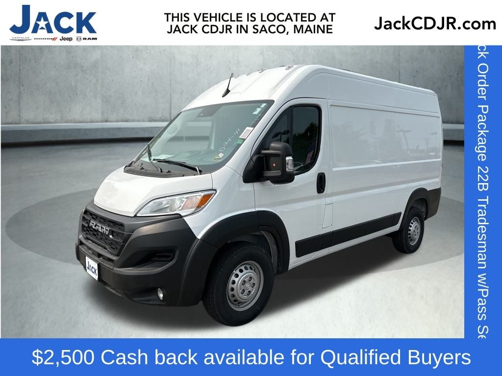 Bright White Clearcoat 2025 Ram ProMaster 2500 High Roof 9-Speed 948TE Automatic 100 Amp Battery, 115V Auxiliary Power Outlet, 12V Rear Auxiliary Power Outlet, 4-Way Manual Adjust Front Passenger Seat, Convenience Group, Exterior Mirrors w/Heating Element, Exterior Mirrors w/Supplemental Signals, Front Fog Lamps, MOPAR Side Wall Paneling U & L, Passenger Bucket Seat, Power Adjust Mirrors, Power Folding/Heated Mirrors, Power Group, Power-Adjustable Convex Aux Mirrors, Power-Folding Mirrors, Quick Order Package 22B Tradesman w/Pass Seat, Rear Cargo LED Lamp, Side Wall Paneling Lower. Price includes: $2500 - 2025 National Bonus Cash . Exp. 12/01/2025