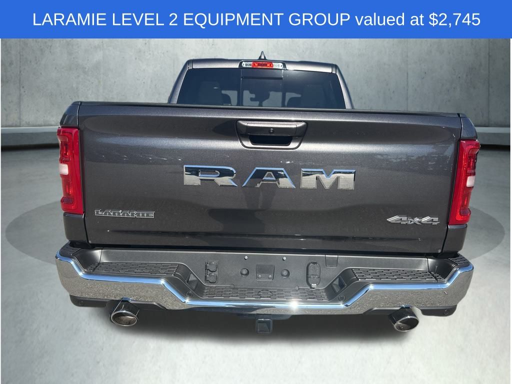 Granite Crystal Metallic Clearcoat 2026 Ram 1500 Laramie 8-Speed Automatic 12-Way/1-Way Trailer Connector, 14.4" Touchscreen Display, 4G LTE Wi-Fi Hot Spot, Active Driving Assist System, Advanced Safety Group II, Apple CarPlay, Chrome Exterior Mirrors, Cluster 12" TFT Color Display, Connected Travel & Traffic Services, Connectivity - US/Canada, Disassociated Touchscreen Display, Dome Dual LED Reading Lamp, Drowsy Driver Detection, Dual Wireless Charging Pad, Dual-Pane Panoramic Sunroof, Electronic Stability Control, Evasive Steer Assist, Exterior Mirrors Approach Lamps, Front fog lights, Front Passenger Interactive Display, Global Telematics Box Module (TBM), Google Android Auto, GPS Antenna Input, GPS Navigation, harman/kardon 19 Speaker Premium Sound, HD Radio, Integrated Center Stack Radio, Integrated Voice Command w/Bluetooth, Intersection Collision Assist System, Laramie Level 2 Equipment Group, LED Dome/Reading Lamp, Memory seat, ParkView Rear Back-Up Camera, Power Tailgate, Radio: Uconnect 5 Nav w/14.4" Display, Rain Sensitive Windshield Wipers, Secondary Active Grille Shutters, SiriusXM Radio Service, SiriusXM w/360L, Smartphone As A Key Capable, Surround View Camera System, Traffic Sign Recognition, Trailer Brake Control, Trailer Reverse Steering Control, Trailer Tire Pressure Monitoring System, Trailer Tow Group, USB Host Flip. Price includes: $1000 - 2026 National Bonus Cash . Exp. 03/02/2026 $3500 - 2026 National Retail Consumer Cash . Exp. 03/02/2026