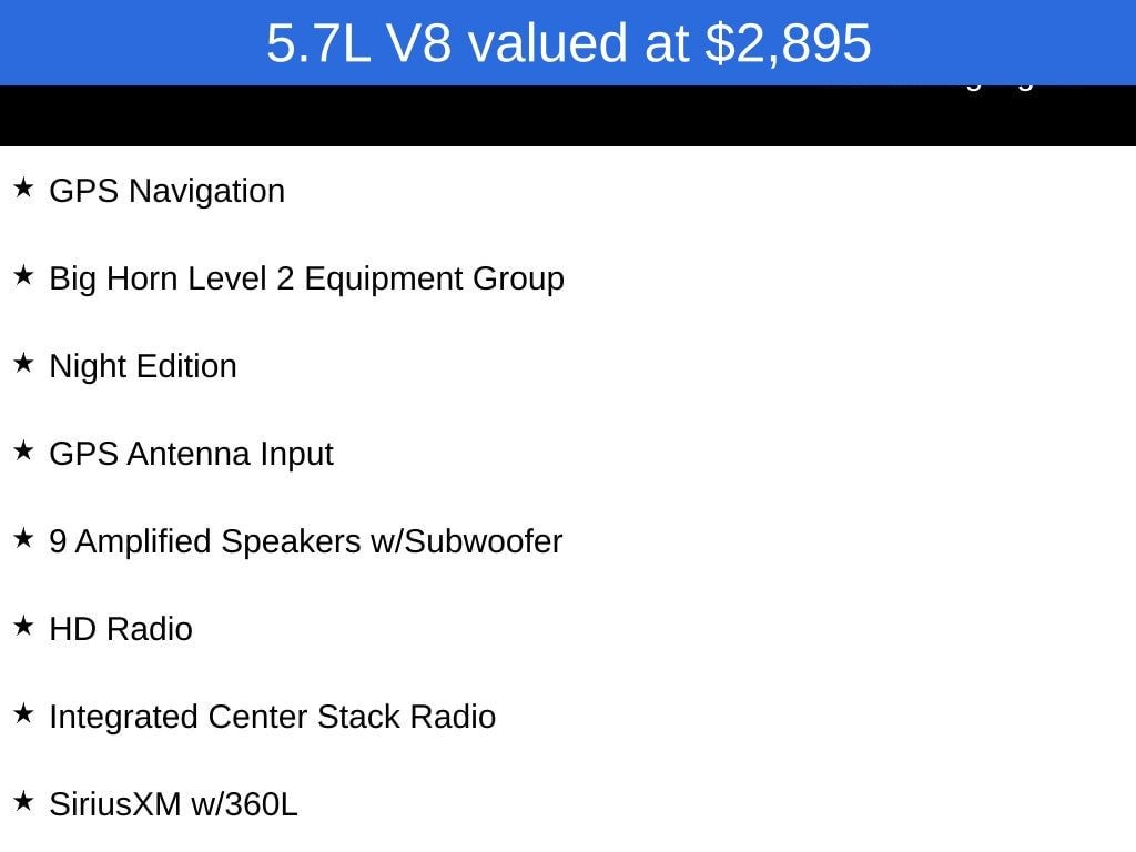 Canyon Lake 2026 Ram 1500 Big Horn/Lone Star 8-Speed Automatic 115V Auxiliary Power Outlet, 115V Auxiliary Rear Power Outlet, 12" Touchscreen Display, 2nd Row In Floor Storage Bins, 3 Rear Seat Head Restraints, 4 Way Front Headrests, 400W Inverter, 4G LTE Wi-Fi Hot Spot, 9 Amplified Speakers w/Subwoofer, Accent Color Door Handles, Accent Color Premium Power Mirrors, Accent Color Tailgate Handle, Air Conditioning ATC w/Dual Zone Control, Anti-Spin Differential Rear Axle, Apple CarPlay, Auto Power-Folding Mirrors, Auto-Dimming Exterior Driver Mirror, Auto-Dimming Rear-View Mirror, Big Horn Level 2 Equipment Group, Black Exterior Mirrors, Black Exterior Truck Badging, Black Headlamp Bezels, Black Interior Accents, Black Painted Exterior Mirrors Caps, Black Premium Power Mirrors, Black Tail Lamp Bezels, Body Color Fender Flares, Body Color Front Bumper, Body Color Rear Bumper w/Step Pads, Bucket Seats, Center Console Parts Module, Cluster 7.0" TFT Color Display, Configurable Drive Mode, Connected Travel & Traffic Services, Connectivity - US/Canada, Convex Wide-Angle Exterior Mirror Insert, Deluxe Cloth Bucket Seats, Disassociated Touchscreen Display, Dual Exhaust w/Black Tips, Electronic Stability Control, Exterior Mirrors Courtesy Lamps, Exterior Mirrors w/Heating Element, Exterior Mirrors w/Supplemental Signals, Front Seat Back Map Pockets, Full Length Floor Console, Global Telematics Box Module (TBM), Glove Box Lamp, Google Android Auto, GPS Antenna Input, GPS Navigation, Grille Black Surround Black Mesh, HD Radio, Heated Front Seats, Heated Steering Wheel, Integrated Center Stack Radio, Integrated Voice Command w/Bluetooth, Leather Wrapped Steering Wheel, LED Dome Lamp w/On/Off Switch, LED Footwell Lighting, Manual Adjust 4-Way Front Passenger Seat, Media Hub w/2 Charge Only USBs, Mopar Black Tubular Side Steps, Night Edition, Overhead LED Lamps, ParkView Rear Back-Up Camera, Power 2-Way Driver Lumbar Adjust, Power Adjust 8-Way Driver Seat, Power Adjustable Pedals, Premium Overhead Console, Radio: Uconnect 5 Nav w/12.0" Display, RAM Grille Badge - Black, Rear 60/40 Folding Seat, Rear Center Armrest, Rear Power Sliding Window, Rear Window Defroster, Remote Tailgate Release, Secondary Active Grille Shutters, Security Alarm, SiriusXM Radio Service, SiriusXM w/360L, Steering Wheel Mounted Audio Controls, Sun Visors w/Illuminated Vanity Mirrors, Universal Garage Door Opener, USB Host Flip, Wheels: 20" x 9.0" Aluminum Painted Clad, Wheels: 20" x 9" Aluminum Chrome Clad (WRK), Wireless Charging Pad. Price includes: $3500 - 2026 National Retail Consumer Cash . Exp. 12/01/2025