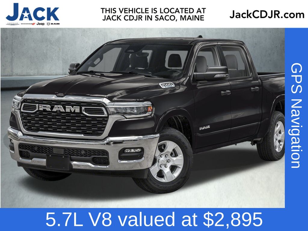 Diamond Black Crystal Pearlcoat 2026 Ram 1500 Big Horn/Lone Star 8-Speed Automatic 115V Auxiliary Power Outlet, 115V Auxiliary Rear Power Outlet, 12" Touchscreen Display, 2nd Row in Floor Storage Bins, 3 Rear Seat Head Restraints, 4 Way Front Headrests, 400W Inverter, 4G LTE Wi-Fi Hot Spot, 9 Amplified Speakers with Subwoofer, Accent Color Door Handles, Accent Color Premium Power Mirrors, Accent Color Tailgate Handle, Air Conditioning ATC with Dual Zone Control, Anti-Spin Differential Rear Axle, Apple CarPlay, Auto Power-Folding Mirrors, Auto-Dimming Exterior Driver Mirror, Auto-Dimming Rear-View Mirror, Big Horn Level 2 Equipment Group, Black Exterior Mirrors, Black Exterior Truck Badging, Black Headlamp Bezels, Black Interior Accents, Black Painted Exterior Mirrors Caps, Black Premium Power Mirrors, Black Tail Lamp Bezels, Body Color Fender Flares, Body Color Front Bumper, Body Color Rear Bumper with Step Pads, Bucket Seats, Center Console Parts Module, Cluster 7.0" TFT Color Display, Configurable Drive Mode, Connected Travel and Traffic Services, Connectivity - US/Canada, Convex Wide-Angle Exterior Mirror Insert, Deluxe Cloth Bucket Seats, Disassociated Touchscreen Display, Dual Exhaust with Black Tips, Electronic Stability Control, Exterior Mirrors Courtesy Lamps, Exterior Mirrors with Heating Element, Exterior Mirrors with Supplemental Signals, Front Seat Back Map Pockets, Full Length Floor Console, Global Telematics Box Module, Glove Box Lamp, Google Android Auto, GPS Antenna Input, GPS Navigation, Grille Black Surround Black Mesh, HD Radio, Heated Front Seats, Heated Steering Wheel, Integrated Center Stack Radio, Integrated Voice Command with Bluetooth, Leather Wrapped Steering Wheel, LED Dome Lamp with on/Off Switch, LED Footwell Lighting, Manual Adjust 4-Way Front Passenger Seat, Media Hub with 2 Charge Only USBs, Night Edition, Overhead LED Lamps, ParkView Rear Back-Up Camera, Power 2-Way Driver Lumbar Adjust, Power Adjust 8-Way Driver Seat, Power Adjustable Pedals, Premium Overhead Console, Radio: Uconnect 5 Navigation with 12.0" Display, RAM Grille Badge - Black, Rear 60/40 Folding Seat, Rear Center Armrest, Rear Power Sliding Window, Rear Window Defroster, Remote Tailgate Release, Security Alarm, SiriusXM Radio Service, SiriusXM with 360L, Steering Wheel Mounted Audio Controls, Sun Visors with Illuminated Vanity Mirrors, Universal Garage Door Opener, USB Host Flip, Wheels: 20" x 9.0" Aluminum Painted Clad, Wheels: 20" x 9" Aluminum Chrome Clad.