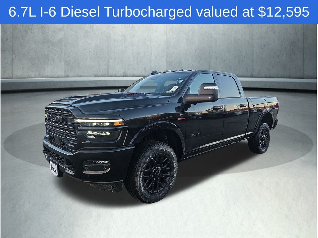 Pxj 2026 Ram 2500 Limited 8-Speed Automatic 17 Speakers, Active Lane Management System, Adaptive Steering System, Anti-Spin Differential Rear Axle, Automatic temperature control, Auxiliary Switches Prep, Black Exterior Truck Badging, Black Grille Limited, Black Interior Accents, Black Wheel Center Hub, Body Color Grille-Surround, Cold Weather Group, CTR Stop Lamp w/Cargo View Camera, Digital 3.0 Rear View Auto Dimming Mirror, Digital Rearview Mirror, Drowsy Driver Detection, Electronic Stability Control, Engine Block Heater, Front dual zone A/C, harman/kardon® Speakers, LED Bed Lighting, Limited Level 1 Equipment Group, MOPAR Spray In Bedliner, MOPAR Winter Front Grille Cover, Navigation System, Night Edition, ParkView Rear Back-Up Camera, Power Deployable Running Boards, Power Sunroof, Radio: Uconnect 5 Nav w/14.4" Display, Remote keyless entry, Sport Performance Hood, Surround View Camera System, Tow Technology Plus Group, Traffic Sign Recognition, Trailer Reverse Guidance, Trailer Reverse Steering Control, Trailer Tire Pressure Monitoring System, Wheels: 20" x 8.0" Night Edition Black Aluminum. Price includes: $1000 - 2026 National Bonus Cash . Exp. 01/05/2026