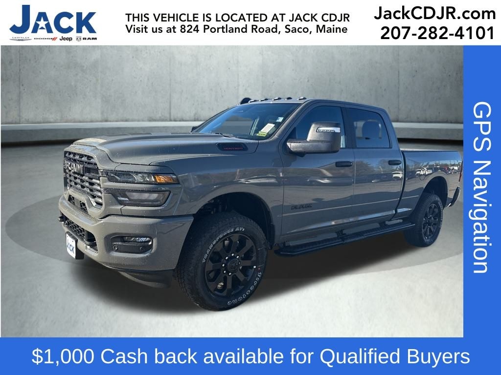 Pdn 2026 Ram 2500 Big Horn 8-Speed Automatic 115V Auxiliary Front Power Outlet, 115V Auxiliary Rear Power Outlet, 12" Touchscreen Display, 2 Way Rear Headrest Seat, 2nd Row In Floor Storage Bins, 4 Way Front Headrests, 400W Inverter, 4G LTE Wi-Fi Hot Spot, 9 Alpine Speakers w/Subwoofer, Active Lane Management System, Adaptive Steering System, Air Conditioning ATC w/Dual Zone Control, Alexa Built-In, Anti-Spin Differential Rear Axle, Apple CarPlay, Auto High Beam Headlamp Control, Auto Power-Folding Mirrors, Auto-Dimming Rear-View Mirror, Big Horn Level 2 Plus Equipment Group, Black Exterior Mirrors, Black Exterior Truck Badging, Black Interior Accents, Black Wheel Center Hub, Blind Spot & Cross Path Detection, Body Color Grille-Surround, Bucket Seats, Cluster 7.0" TFT Color Display, Connected Travel & Traffic Services, Connectivity - US/Canada, CTR Stop Lamp w/Cargo View Camera, Dampened Tailgate, Disassociated Touchscreen Display, Drowsy Driver Detection, Dual Glove Boxes, Dual Wireless Charging Pad, Emergency Vehicle Alert System (EVAS), Exterior 115V AC Outlet, Exterior Mirrors Courtesy Lamps, Exterior Mirrors w/Heating Element, Exterior Mirrors w/Supplemental Signals, Foam Bottle Insert (Door Trim Panel), Folding Flat Load Floor Storage, Footwell Courtesy Lamp, For Details, Visit DriveUconnect.com, For More Info, Call 800-643-2112, Forward & Reverse Utility Lights, Front Seat Back Map Pockets, Full Length Upgraded Floor Console, Global Telematics Box Module (TBM), Gloss Black Nostrils/Mic Black Grille, Glove Box Lamp, Google Android Auto, GPS Antenna Input, GPS Navigation, HD Radio, Heated Front Seats, Heated Steering Wheel, Integrated Voice Command w/Bluetooth, LED Bed Lighting, LED Tail Lamps, Locking Lower Glove Box, Luxury Steering Wheel, Manual Adjust 4-Way Front Passenger Seat, Media Hub w/2 Charge Only USBs, Mirror Running Lights, MOPAR Deployable Bed Step, MOPAR Spray In Bedliner, Night Edition, Off-Road Info Pages, Painted Front Bumper, Painted Rear Bumper, ParkView Rear Back-Up Camera, Power 2-Way Driver Lumbar Adjust, Power Adjust 8-Way Driver Seat, Power Adjust Mirrors, Power Adjustable Pedals, Power Heated Folding Telescopic Mirrors, Power Telescoping Mirrors, Power-Adjustable Convex Aux Mirrors, Premium Cloth Bucket Seats, Radio: Uconnect 5 Nav w/12.0" Display, Rain Sensitive Windshield Wipers, Rear 60/40 Folding Seat, Rear Dome w/On/Off Switch Lamp, Rear Power Sliding Window, Red Tail Lamp Bezels, Remote Start System, Selectable Tire Fill Alert, SiriusXM Radio Service, SiriusXM w/360L, Steering Wheel Mounted Audio Controls, Sun Visors w/Illuminated Vanity Mirrors, Surround View Camera System, Traffic Sign Recognition, Trailer Reverse Guidance, Trailer Tire Pressure Monitoring System, Trailer Tow Pages, Universal Garage Door Opener, Wheels: 20" x 8.0" Black Painted Aluminum. Price includes: $1000 - 2026 National Bonus Cash . Exp. 11/03/2025