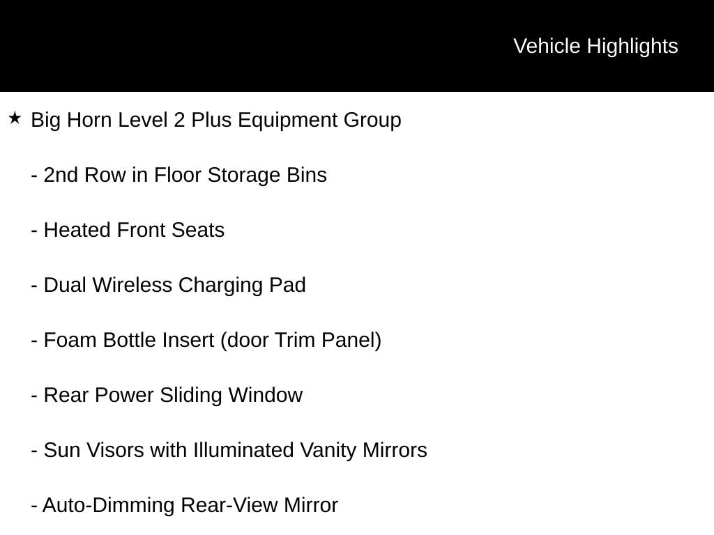 Diamond Black Crystal Pearlcoat 2026 Ram 3500 Big Horn 8-Speed Automatic 115-Volt Auxiliary Front Power Outlet, 12" Touchscreen Display, 2 Way Rear Headrest Seat, 2nd Row in Floor Storage Bins, 4 Way Front Headrests, 400W Inverter, 4G LTE Wi-Fi Hot Spot, 9 Alpine Speakers with Subwoofer, Active Lane Management System, Adaptive Steering System, Air Conditioning ATC with Dual Zone Control, Alexa Built-in, Apple CarPlay, Auto High Beam Headlamp Control, Auto Power-Folding Mirrors, Auto-Dimming Rear-View Mirror, Big Horn Level 2 Plus Equipment Group, Black Exterior Mirrors, Black Exterior Truck Badging, Black Interior Accents, Black Wheel Center Hub, Blind Spot and Cross Path Detection, Body Color Grille Surround, Bucket Seats, Center Stop Lamp with Cargo View Camera, Cluster 7.0" TFT Color Display, Connected Travel and Traffic Services, Connectivity - US/Canada, Dampened Tailgate, Disassociated Touchscreen Display, Drowsy Driver Detection, Dual Glove Boxes, Dual Wireless Charging Pad, Electronic Stability Control, Emergency Vehicle Alert System (EVAS), Exterior 115V AC Outlet, Exterior Mirrors Courtesy Lamps, Exterior Mirrors with Heating Element, Exterior Mirrors with Supplemental Signals, Foam Bottle Insert (door Trim Panel), Folding Flat Load Floor Storage, Footwell Courtesy Lamp, For Details Visit DriveUconnect.com, For More Info, Call 800-643-2112, Forward and Reverse Utility Lights, Front Seat Back Map Pockets, Full Length Upgraded Floor Console, Global Telematics Box Module, Gloss Black Nostrils/Molded in Color Black Grille, Glove Box Lamp, Google Android Auto, GPS Antenna Input, GPS Navigation, HD Radio, Heated Front Seats, Heated Steering Wheel, Integrated Voice Command with Bluetooth, LED Bed Lighting, LED Tail Lamps, Locking Lower Glove Box, Luxury Steering Wheel, Manual Adjust 4-Way Front Passenger Seat, Mirror Running Lights, MOPAR Deployable Bed Step, MOPAR Spray in Bedliner, Night Edition, Off-Road Information Pages, Painted Front Bumper, Painted Rear Bumper, ParkView Rear Back-Up Camera, Power 2-Way Driver Lumbar Adjust, Power Adjust 8-Way Driver Seat, Power Adjust Mirrors, Power Adjustable Pedals, Power Heated Fold Telescopic Mirrors, Power Telescoping Mirrors, Power-Adjustable Convex Aux Mirrors, Premium Cloth Bucket Seats, Radio: Uconnect 5 Navigation with 12.0" Display, Rain Sensitive Windshield Wipers, Rear 60/40 Folding Seat, Rear Dome with on/Off Switch Lamp, Rear Power Sliding Window, Red Tail Lamp Bezels, Remote Start System, Selectable Tire Fill Alert, SiriusXM Radio Service, SiriusXM with 360L, Steering Wheel Mounted Audio Controls, Sun Visors with Illuminated Vanity Mirrors, Surround View Camera System, Traffic Sign Recognition, Trailer Reverse Guidance, Trailer Tire Pressure Monitoring System, Trailer Tow Pages, Universal Garage Door Opener, Wheels: 20" x 8.0" Black Painted Aluminum. Price includes: $1000 - 2026 National Bonus Cash . Exp. 03/02/2026 $2000 - 2026 National Select Inventory Bonus Cash. Exp. 03/02/2026