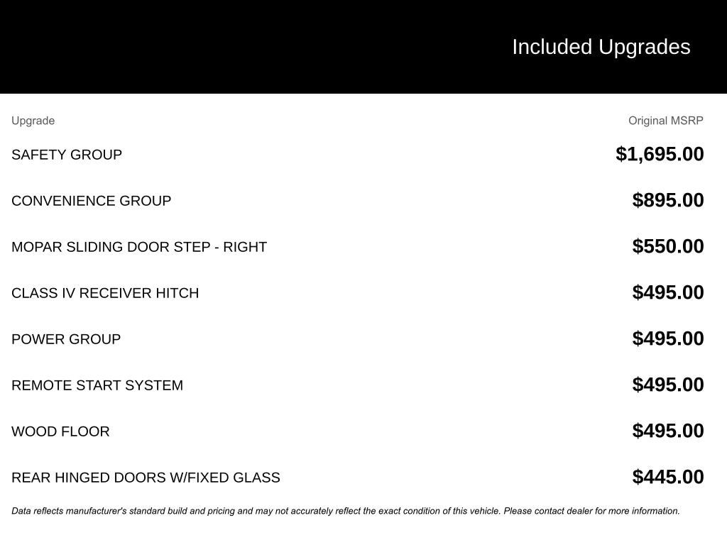 Bright White Clearcoat 2026 Ram ProMaster 2500 High Roof 9-Speed Automatic 100 Amp Battery, 115V Auxiliary Power Outlet, 12V Rear Auxiliary Power Outlet, Air Conditioning, Apple CarPlay/Android Auto, Blind Spot and Cross Path Detection, Cargo Net, Convenience Group, Digital Rearview Mirror with Autodim, Electronic Stability Control, Exterior Mirrors with Heating Element, Exterior Mirrors with Supplemental Signals, Front Bucket Seats, Front Fog Lamps, Heavy Duty Suspension, Intelligent Speed Assist (ISA), Lane Departure Warning Plus, MOPAR Sliding Door Step - Right, Overhead airbag, ParkSense Front/Rear Park Assist System, ParkView Rear Back-Up Camera, Power Adjust Mirrors, Power Folding/Heated Mirrors, Power Group, Power windows, Power-Adjustable Convex Aux Mirrors, Power-Folding Mirrors, Radio: Uconnect 5 with 7" Display, Rear Cargo LED Lamp, Rear Window Defroster, Remote keyless entry, Remote Start System, Safety Group, Shelf Above Roof Trim, Steering wheel mounted audio controls, Storage Group, Traction control, Underseat Storage Tray, Wood Floor. Price includes: 10% Msrp - 2026 Get 10% Below MSRP . Exp. 04/30/2026