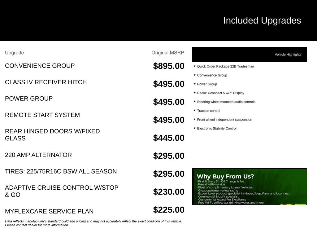 Bright White Clearcoat 2026 Ram ProMaster 1500 9-Speed Automatic 100 Amp Battery, 115V Auxiliary Power Outlet, 12V Rear Auxiliary Power Outlet, 4-Way Manual Adjust Front Passenger Seat, Convenience Group, Electronic Stability Control, Exterior Mirrors w/Heating Element, Exterior Mirrors w/Supplemental Signals, Front Fog Lamps, Front wheel independent suspension, ParkView Rear Back-Up Camera, Passenger Bucket Seat, Power Adjust Mirrors, Power Folding/Heated Mirrors, Power Group, Power-Adjustable Convex Aux Mirrors, Power-Folding Mirrors, Quick Order Package 22B Tradesman, Radio: Uconnect 5 w/7" Display, Rear Cargo LED Lamp, Steering wheel mounted audio controls, Traction control. Price includes: $1500 - 2026 National Bonus Cash . Exp. 12/01/2025