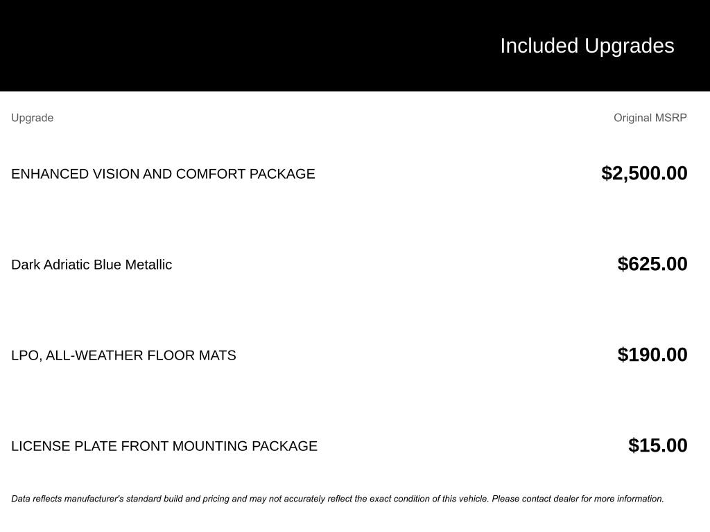 - Enhanced Vision & Comfort Package