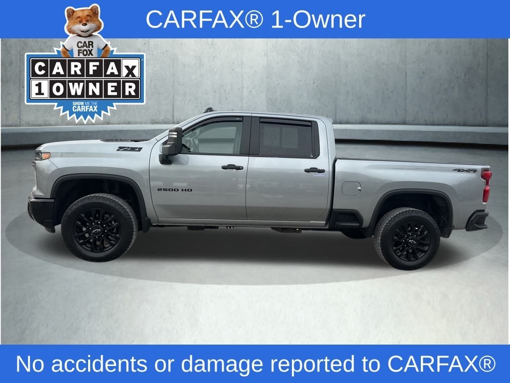 2025 Chevrolet Silverado 2500HD Custom 10-Speed Automatic, 4WD, Jet Black Cloth, 10-Way Power Driver Seat Adjuster with Lumbar, 120-Volt Interior Power Outlet, 170 Amp Alternator, 2-Speed Electronic Shift Transfer Case, 220 Amp Alternator, 3.5" Diagonal Monochromatic Display DIC, 3.73 Rear Axle Ratio, 6-Speaker Audio System, Black Mirror Caps, Bluetooth® For Phone, Chevrolet Connected Access Capable, Color-Keyed Carpeting Floor Covering, Compass, Custom Blackout Package, Custom Convenience Package, Deep-Tinted Glass, Durabed Pickup Bed, Electric Rear-Window Defogger, Electronic Cruise Control with Set and Resume Speed, EZ Lift Power Lock and Release Tailgate, Front Rubberized Vinyl Floor Mats, HD Rear Vision Camera, Heated Vertical Trailering Mirrors, Hill Descent Control, LED Cargo Area Lighting, Locking Tailgate, Manual Tailgate Function with No EZ Lift, Manual Tilt-Wheel Steering Column, Off-Road Suspension, OnStar Services Capable, Power Door Locks, Power Front Windows with Driver Express Up/Down, Power Front Windows with Passenger Express Down, Power Rear Windows with Express Down, Preferred Equipment Group 1CX, Premium audio system: Chevrolet Infotainment 3, Push Button Start, Radio: Chevrolet Infotainment 3 System, Rear 60/40 Folding Bench Seat (folds Up), Rear Rubberized Vinyl Floor Mats, Remote Keyless Entry, Remote Vehicle Starter System, Snow Plow Prep/Camper Package, Standard Tailgate, Suspension Package, Unauthorized Entry Theft-Deterrent System, Wheels: 20" 10-Spoke Machined Aluminum, Wheels: 20" High Gloss Black Painted, Wi-Fi Hotspot Capable, Wireless Phone Projection, Z71 Off-Road Package. CARFAX One-Owner. Clean CARFAX.