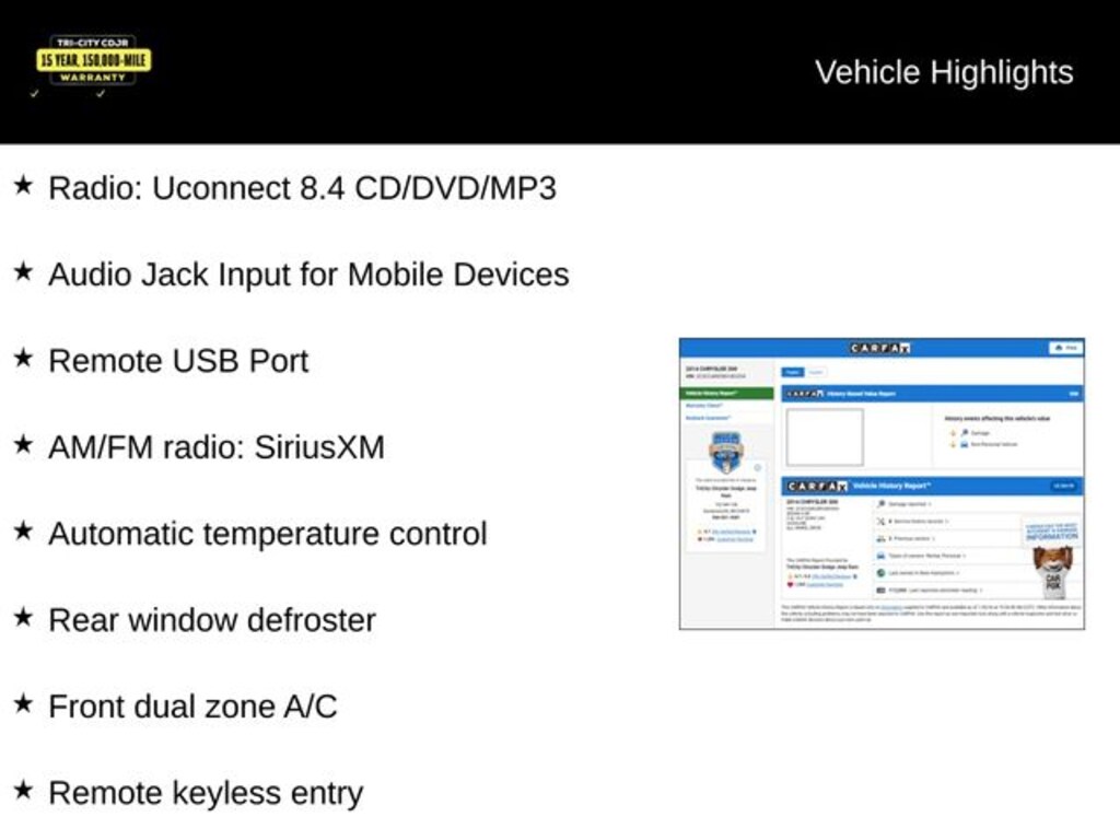 Backed by Chrysler's reputation for quality and reliability, the 2014 300 Base is a testament to timeless design and modern engineering. Experience the difference for yourself and schedule a test drive today. We're confident you'll be captivated by the refined elegance and exceptional capabilities of this remarkable vehicle.