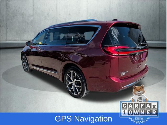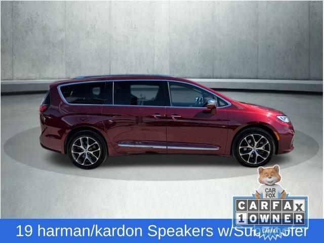 The interior of this Pacifica is a true sanctuary, with premium leather-trimmed bucket seats, a heated steering wheel, and a panoramic sunroof that floods the cabin with natural light. The 10.1-inch Uconnect 5 touchscreen display puts a wealth of information and entertainment at your fingertips, while the 19-speaker harman/kardon audio system delivers a truly immersive listening experience.