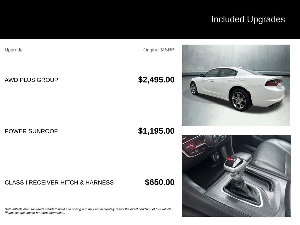 2016 Dodge Charger SXT AWD, Black Leather, Auto Adjust In Reverse Exterior Mirrors, Auto-Dimming Exterior Driver Mirror, Automatic temperature control, AWD Plus Group, Bi-Function HID Projector Head Lamps, Delay-off headlights, Front fog lights, Fully automatic headlights, Heated 2nd Row Seats, Heated front seats, Heated Steering Wheel, Illuminated Rear Cupholders, Leather Trim Seats, ParkSense Rear Park Assist System, ParkView Rear Back-Up Camera, Power Driver/Passenger 4-Way Lumbar Adjust, Power Front Driver/Passenger Seats, Power Heated Memory Mirrors w/Man F/Away, Power Sunroof, Quick Order Package 28H, Radio: Uconnect 8.4, Radio/Driver Seat/Mirrors Memory, Security Alarm, Speed-Sensitive Wipers, Sport Leather Seats w/Met. Accents, Ventilated Front Seats, Wheels: 19" x 7.5" Polished/Painted Aluminum. 18/27 City/Highway MPG CARFAX One-Owner. Clean CARFAX.