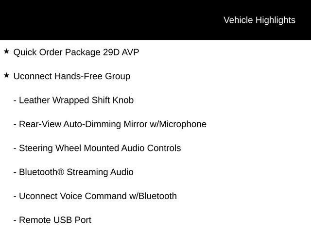 - UCONNECT HANDS-FREE GROUP: Enjoy seamless connectivity with Bluetooth streaming audio, voice command, and a rear-view auto-dimming mirror with microphone.