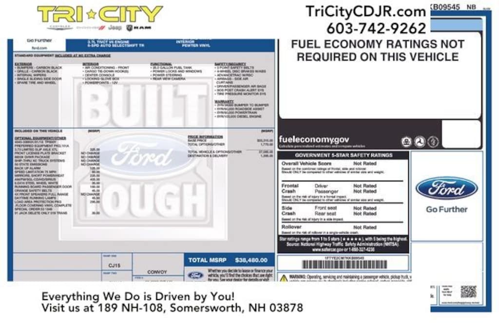 - GVWR: 3,901kg (8,600lbs)