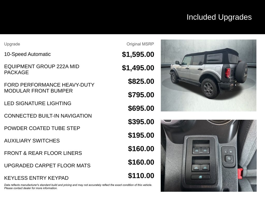 Beyond these custom upgrades, the Bronco Big Bend comes equipped with an impressive array of technology and convenience features, including: