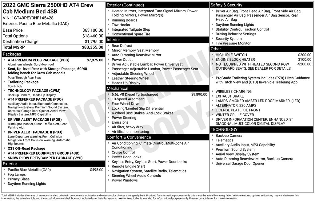 Whether you're hauling heavy loads, navigating rugged terrain, or simply seeking a premium driving experience, this 2022 GMC Sierra 2500HD AT4 PREMIUM PACKAGE is the ultimate choice. Experience the power, technology, and luxury that set this truck apart. Visit our showroom today and let us demonstrate how this exceptional vehicle can elevate your driving experience.