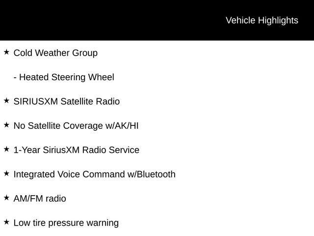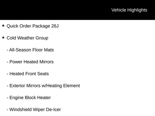 - Cold Weather Group: Includes Power Heated Mirrors, Engine Block Heater, Heated Front Seats, Heated Steering Wheel, and more $895.00 Customer Value!!