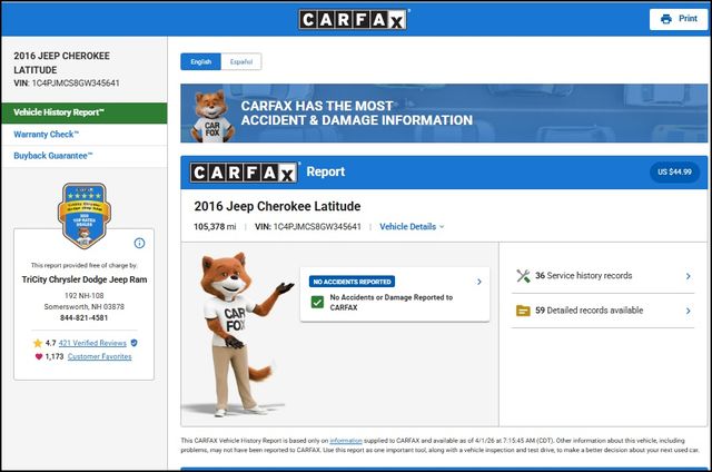 With its impressive combination of performance, technology, and comfort, this 2016 Jeep Cherokee Latitude is the perfect companion for the modern, adventurous driver. Experience the difference for yourself and schedule a test drive today. We're confident you'll be impressed by this exceptional SUV.
