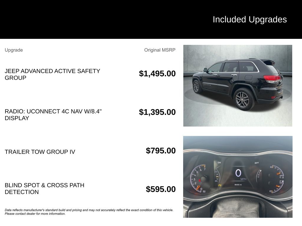 The Jeep Grand Cherokee Limited Jeep Active Safety Group also boasts a wealth of premium amenities, from the luxurious leather-trimmed interior to the heated steering wheel and seats. The Trailer Tow Group IV further enhances its versatility, allowing you to haul your toys with ease.