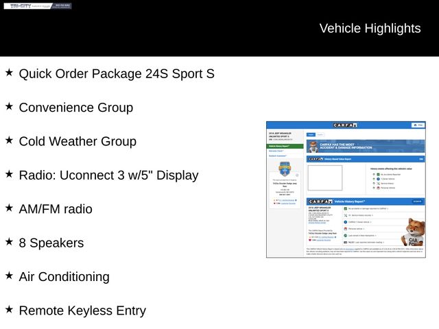 Whether you're exploring the great outdoors or navigating the daily commute, this 2018 Jeep Wrangler Unlimited Sport S is the perfect companion. With its uncompromising performance, premium features, and iconic Jeep design, this Wrangler is sure to exceed your expectations. Experience the difference for yourself - schedule a test drive today and discover the freedom of Jeep ownership.