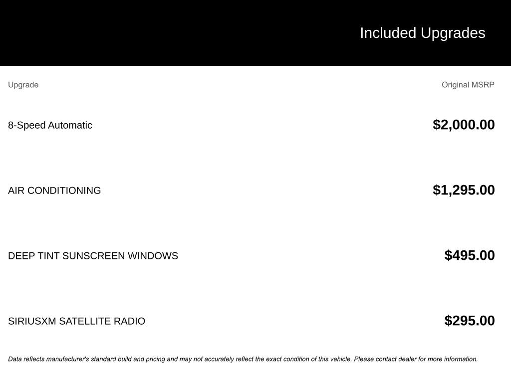 - 8-Speed Automatic Transmission $2000.00 Added Customer Value!