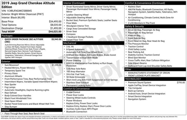 Discover the perfect blend of capability and style with this 2019 Jeep Grand Cherokee Altitude. Boasting a powerful 3.6L V6 engine, 4-wheel drive, and a commanding presence, this Grand Cherokee is ready to take on any adventure.