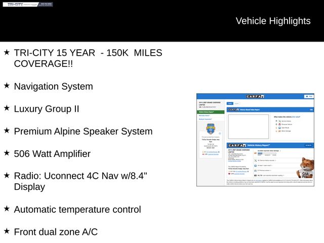 Elevate your driving experience with the 2019 Jeep Grand Cherokee Limited Luxury Group II. Discover the perfect blend of power, luxury, and technology that will transform your time on the road. Visit our showroom today and let us demonstrate why this exceptional SUV is the perfect choice for your next adventure.