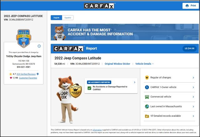 We invite you to visit our showroom and experience the 2022 Jeep Compass Latitude for yourself. Our knowledgeable sales team is ready to answer any questions you may have and help you discover the perfect vehicle to meet your needs. Don't miss the opportunity to make this exceptional SUV your own.
