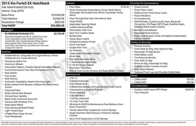 Discover the perfect blend of style, technology, and performance in this 2015 Kia Forte5 EX. With its sleek exterior, spacious interior, and exceptional list of features, this Forte5 is the ideal choice for the discerning driver.