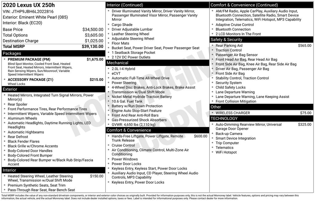 Experience the perfect balance of luxury, technology, and efficiency in the 2020 Lexus UX 250h Base. Visit our showroom today and let us demonstrate how this remarkable crossover can elevate your driving experience.