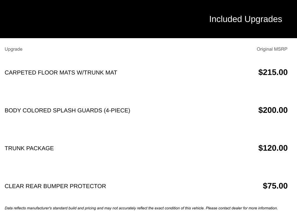 - Carpeted Floor Mats w/Trunk Mat