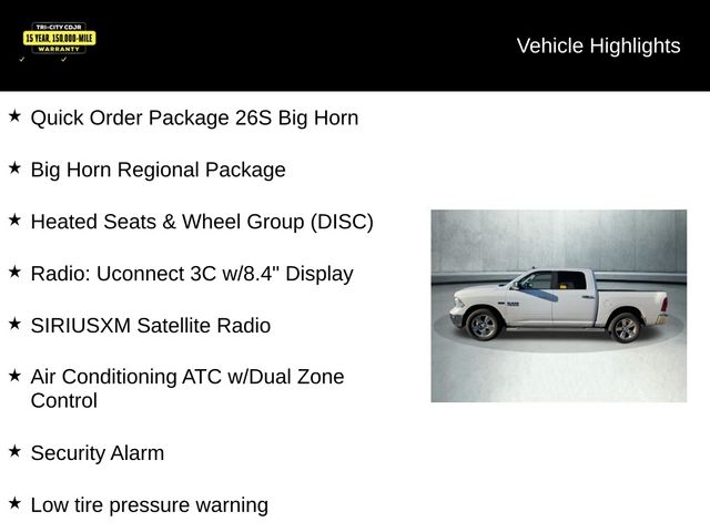 The Big Horn trim level offers a premium experience, with luxurious touches like leather-wrapped steering wheel, dual-zone climate control, and an 8.4-inch touchscreen display with Uconnect infotainment. Safety and convenience are also prioritized, with features like a backup camera, remote start, and a universal garage door opener.