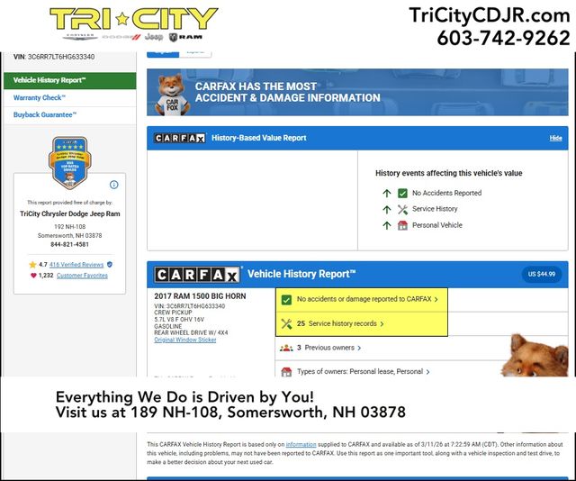 With its impressive performance, thoughtful features, and distinctive style, the 2017 Ram 1500 Big Horn is a truck that's ready to take on any challenge. We invite you to come in and explore this remarkable vehicle in person. Our knowledgeable sales team is here to answer any questions and help you discover why the Ram 1500 is the perfect choice for your next vehicle. Visit us today and let's get you behind the wheel of this impressive truck.