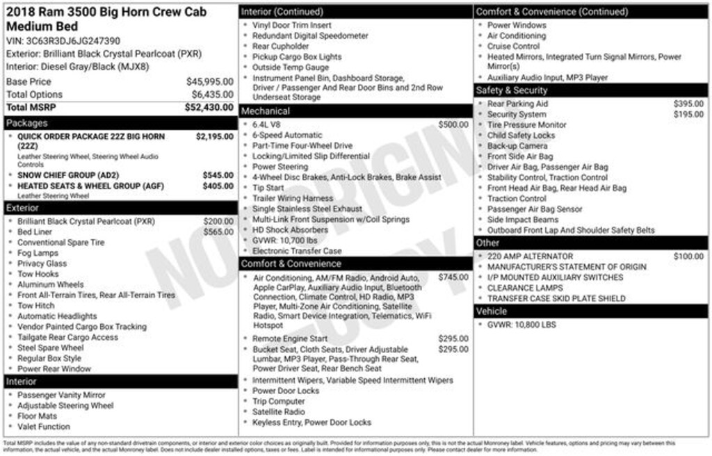 Whether you're a contractor, a weekend warrior, or simply someone who appreciates the rugged capability of a true workhorse, this 2018 Ram 3500 Big Horn is the perfect companion. Experience the power, the comfort, and the confidence that comes with owning this exceptional vehicle.