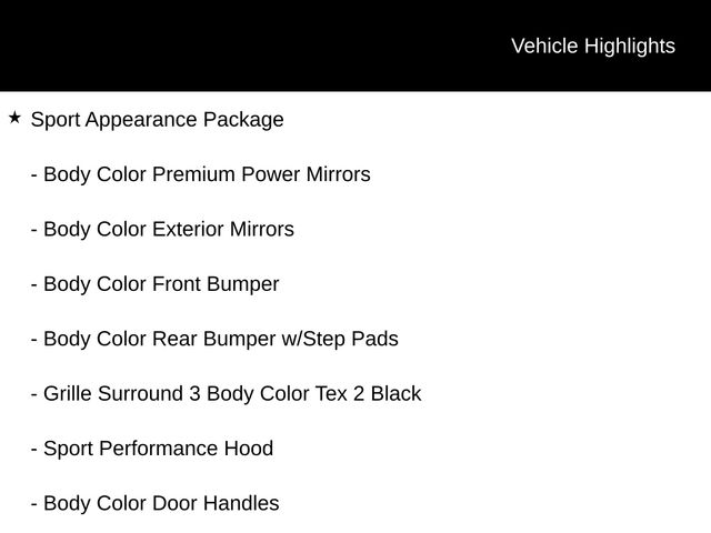- SPORT APPEARANCE PACKAGE: Turn heads with the bold, sporty styling of the body-color exterior accents, 20-inch premium painted wheels, and the distinctive sport performance hood. $2595.00 Added Value!