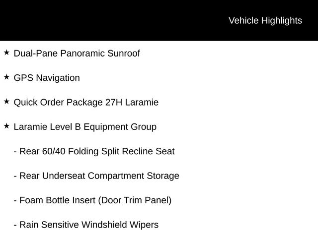Inside, the Laramie's cabin is a true sanctuary of comfort and convenience. Sink into the plush, leather-trimmed bucket seats with heating and ventilation, and enjoy the convenience of the full-length center console. The dual-zone automatic climate control and heated steering wheel will keep you and your passengers comfortable in any weather.