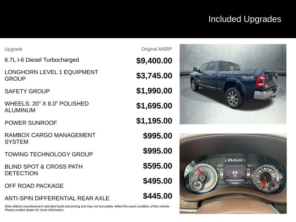 ⢠Power sunroof, RamBox cargo management system, and 220-amp alternator