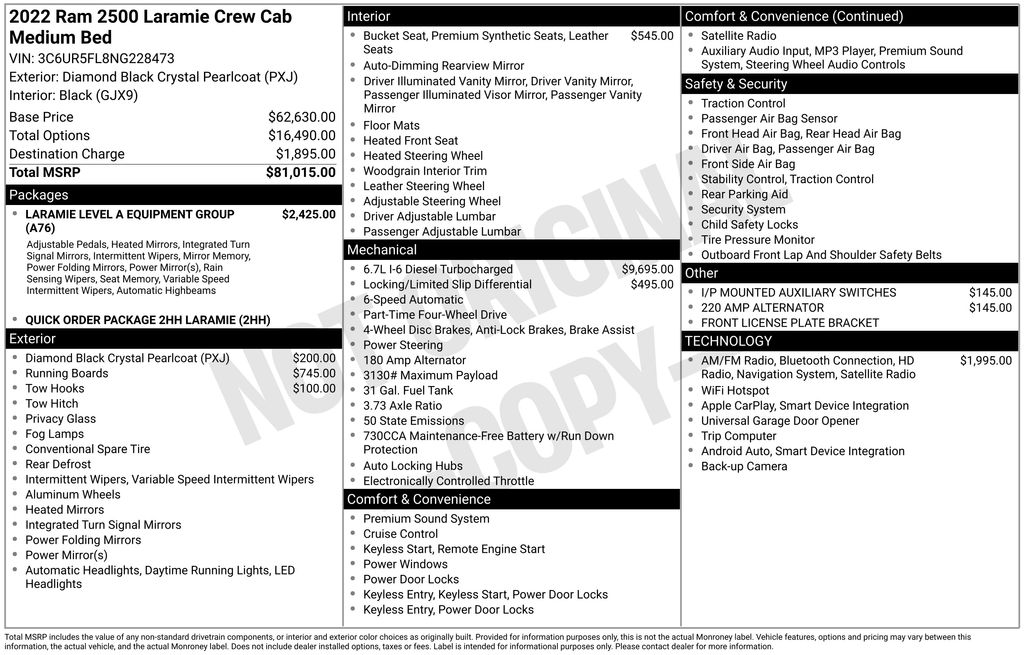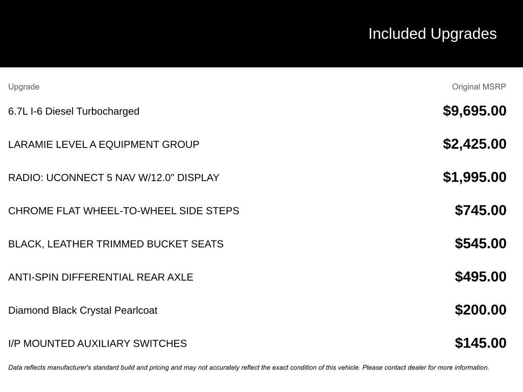 - Cummins 6.7L I6 Turbodiesel engine $9,495 Added Value!