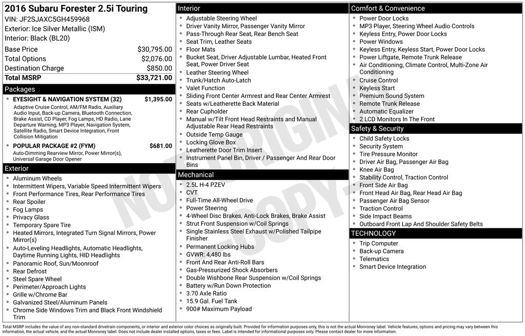 This 2016 Subaru Forester 2.5i Touring is a true gem, blending exceptional performance, advanced technology, and sophisticated style. Experience the difference for yourself and schedule a test drive today. We're confident you'll be impressed by this remarkable SUV.