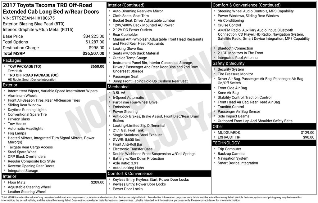 With its bold styling, exceptional capability, and host of advanced features, this 2017 Toyota Tacoma TRD Off-Road V6 is a true standout in the mid-size truck segment. Experience the difference for yourself and schedule a test drive today. We're confident you'll be impressed by the Tacoma's uncompromising performance and refined driving dynamics.