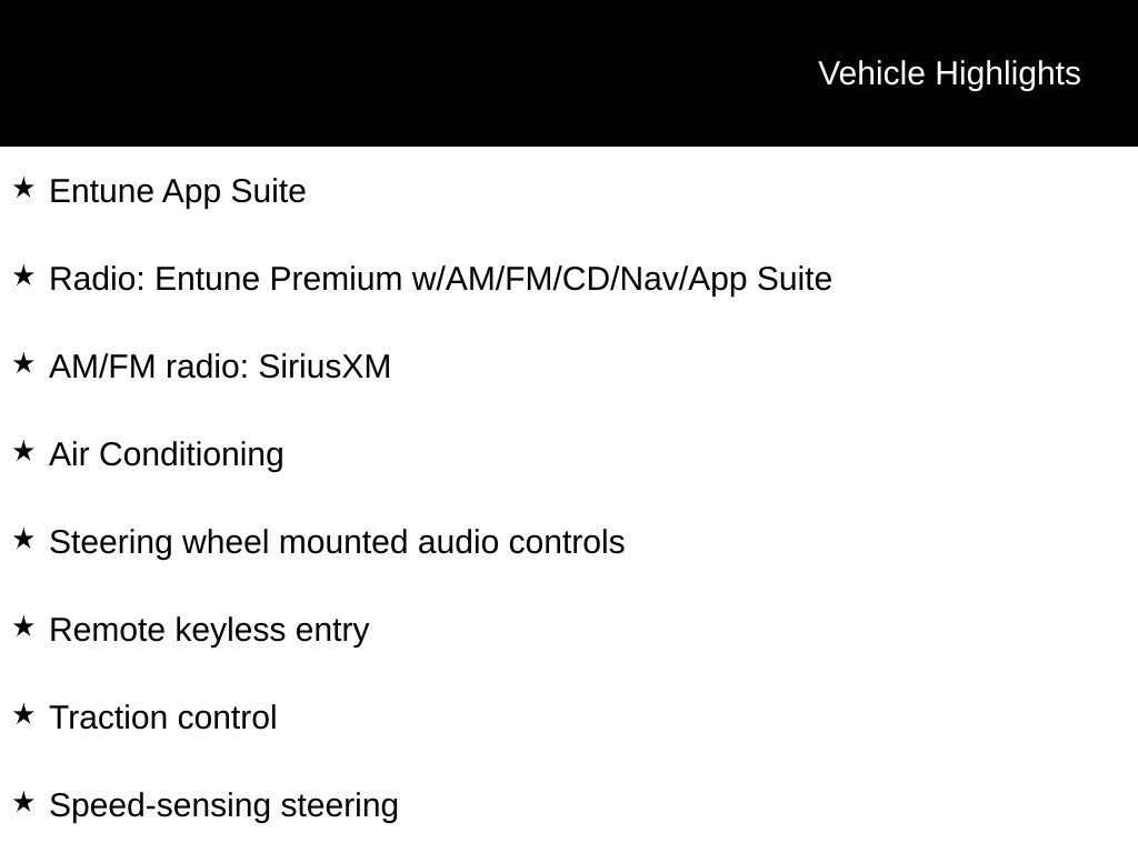 - Radio: Entune Premium w/AM/FM/CD/Nav/App Suite