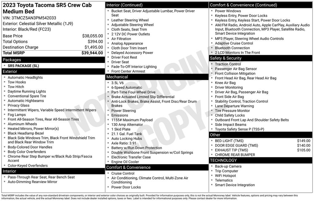 We invite you to visit our showroom and take this remarkable truck for a test drive. Discover the true power and versatility of the 2023 Toyota Tacoma SR5 V6 and let it elevate your driving experience to new heights. We're confident that once you experience the Tacoma SR5 V6, you'll be convinced that it's the perfect vehicle to meet your needs.