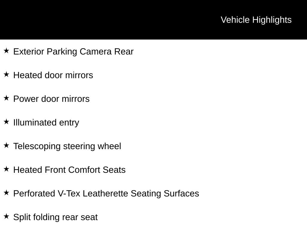 Slip into the luxurious Perforated V-Tex Leatherette Seating Surfaces and enjoy the convenience of the Power Liftgate, which makes loading and unloading a breeze. The Exterior Parking Camera Rear and Heated Front Comfort Seats add an extra layer of comfort and convenience to your daily commute.