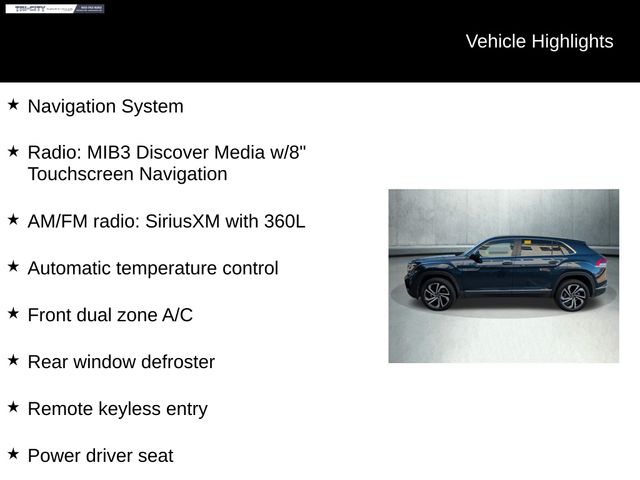 Elevate your driving experience with the 2023 Volkswagen Atlas Cross Sport 2.0T SEL. Discover the perfect blend of form and function, where every mile is an adventure. Contact us today to schedule a test drive and experience the exceptional craftsmanship and capabilities of this remarkable SUV.